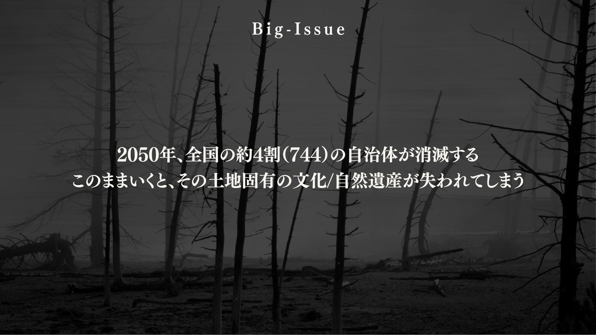 2050年、全国の約4割(744)の自治体が消滅する。このままいくと、その土地固有の文化/自然遺産が失われてしまう。